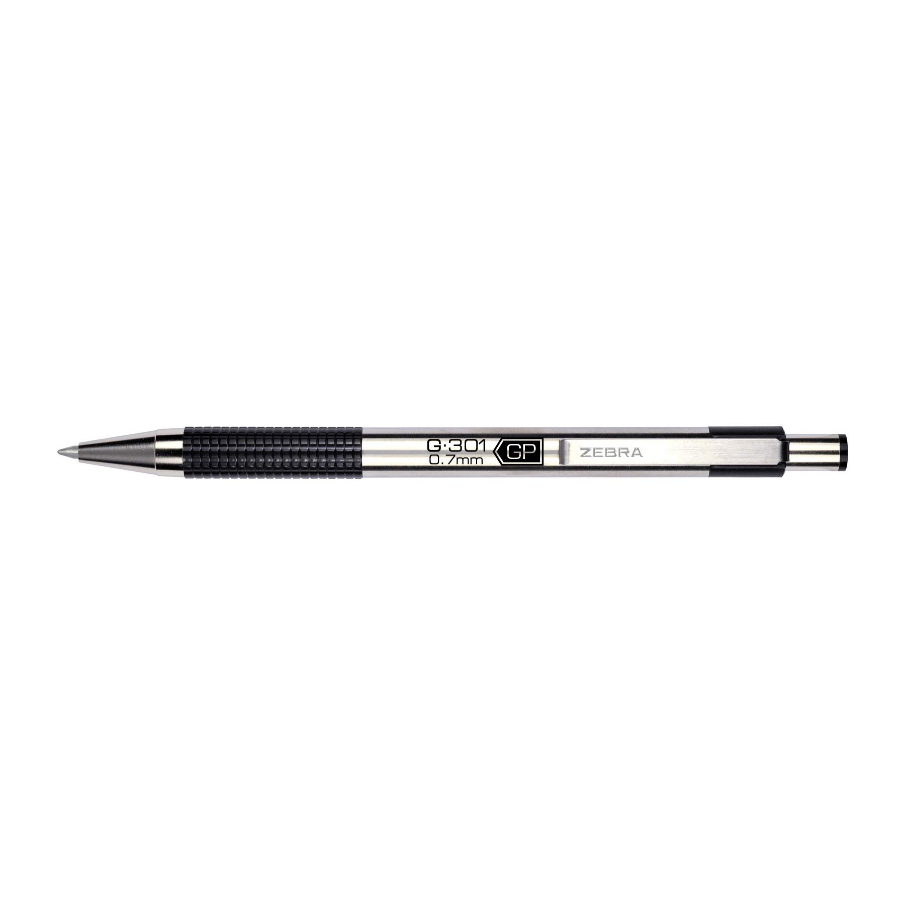 Zebra Pen G-301 Retractable Gel Pen, 0.7mm Medium Point, Stainless Steel Barrel, Textured Grip, Easy Glide Ink Provides a Smooth and Skipless Writing Experience, Black Ink, 12-Pack (41310)