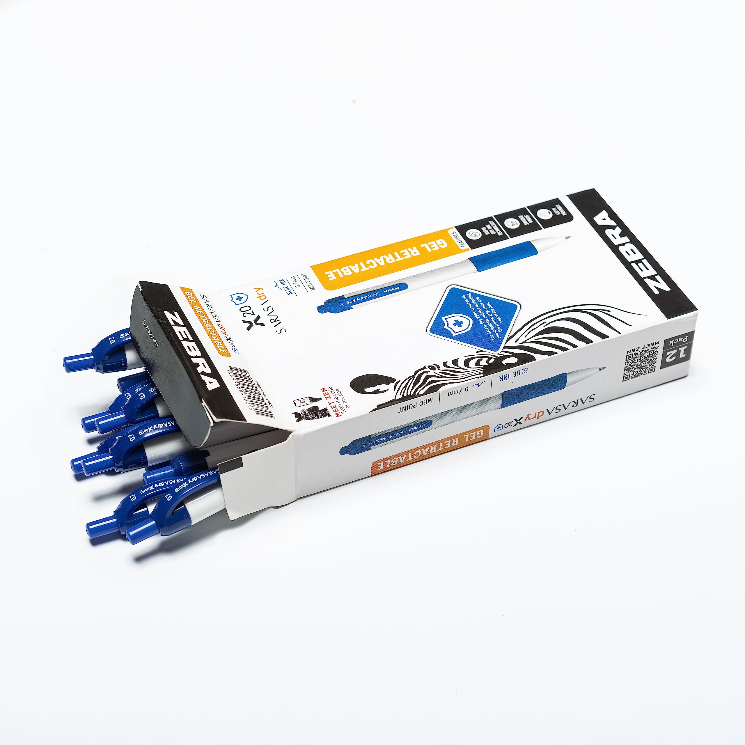 Zebra Pen, SARASA Dry X20+ Retractable Gel Pens, 0.7mm Medium Point, Blue Ink, Fast-Dry Smear-Resistant Gel, Protective Coated Barrel with Comfort Grip, Left-Hand Friendly, 12-Pack (41620)