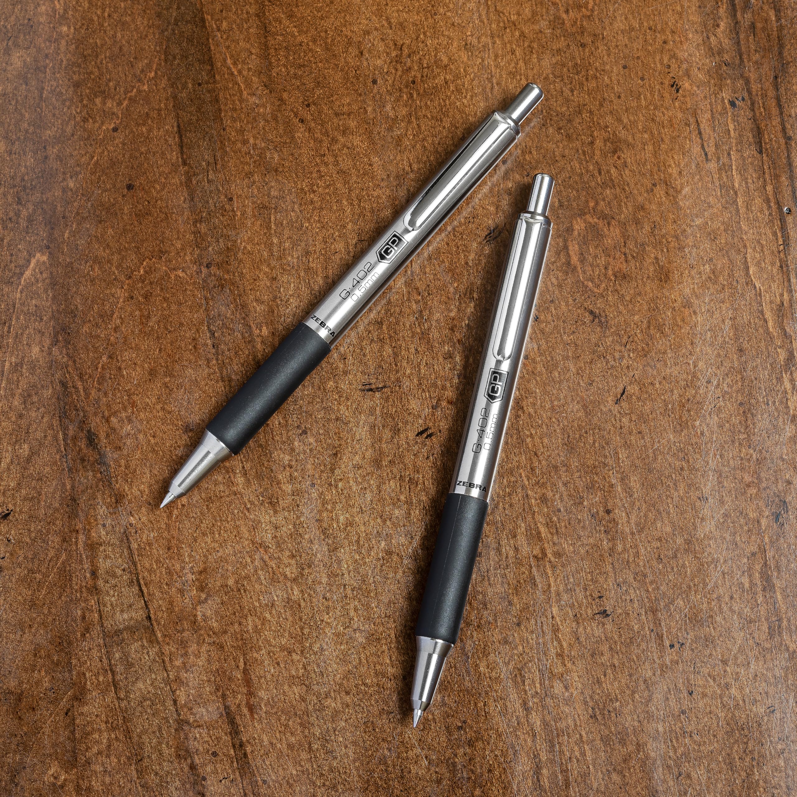 Zebra Pen - STEEL G-402 Retractable Gel Pens - 0.5mm Fine Point - Smooth Black Ink - Rapid Dry Ink for No Smears or Smudges - Refillable Stainless Steel Writing Pens for Office, School, 2 Pack (49212)